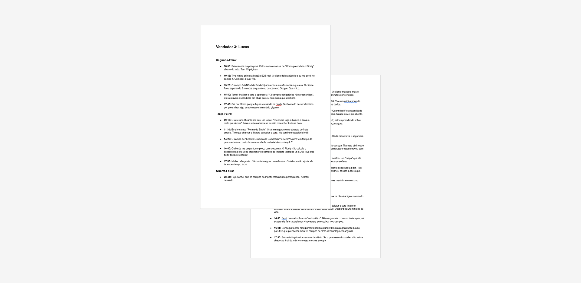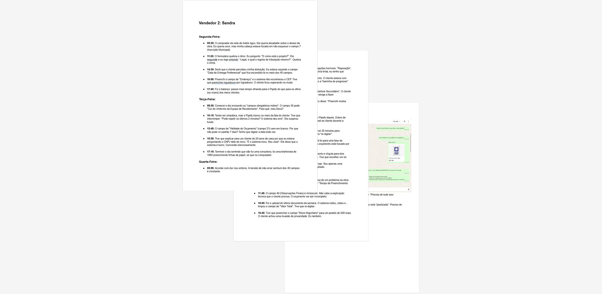 As jornadas de usuário foram criadas a partir do estudo de diário e as personas, nossos especialistas conseguiram encontrar vários pontos de melhorias no fluxo de vendas e documentaram para as próximas etapas.