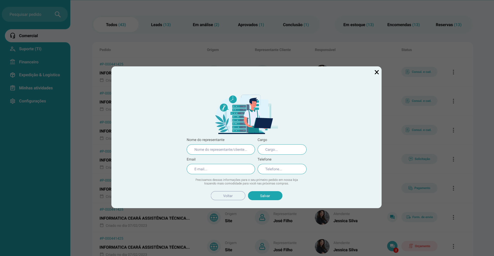 Dos 40 campos de formulários encontrados no sistema atual de nosso cliente onde muitos eram preenchidos de forma manual ou repetidos, nossos especialistas conseguiram automatizar muitos deles e reduzir para 16 campos o que facilitaria muito o ciclo de vendas.